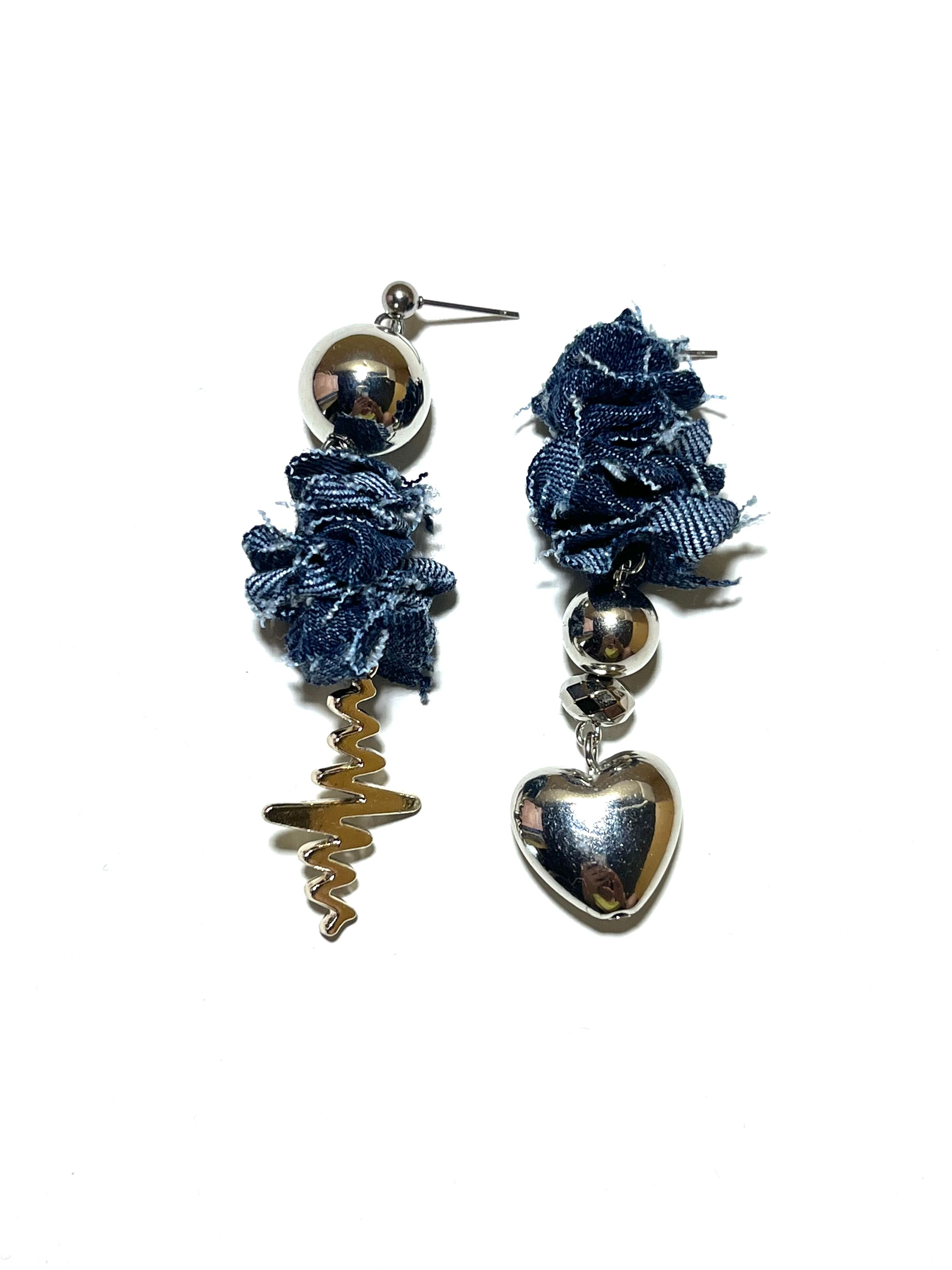 No.182 ハートと脈 Heart 心電図 大ぶり シルバー ブラックデニムデニムピアス ピアス 軽い ステンレス シルバー 大ぶり チェーン 合金 カッコいい 金属アレルギー 個性的 個性派 クリア シリコンキャッチ | あいにー