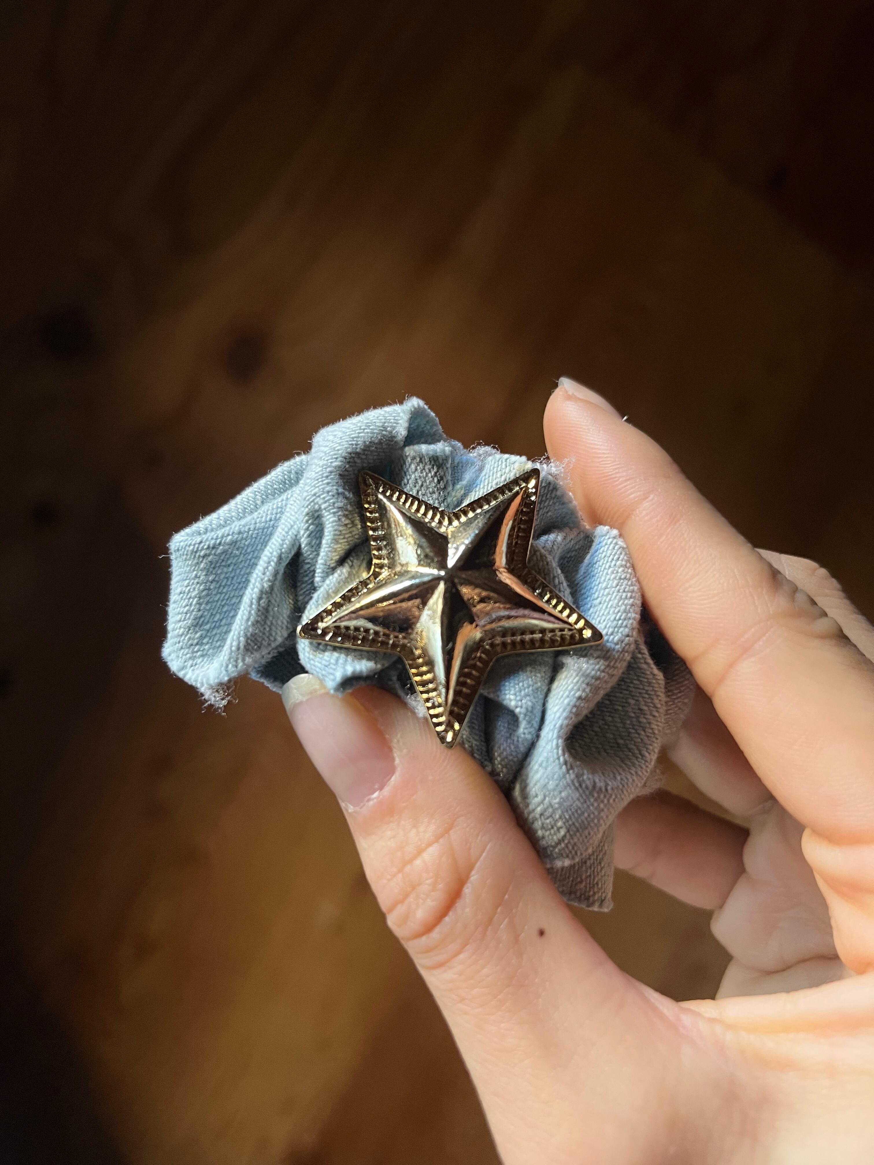 デニムに星を組み合わせた ゴールドのポニーフックです!