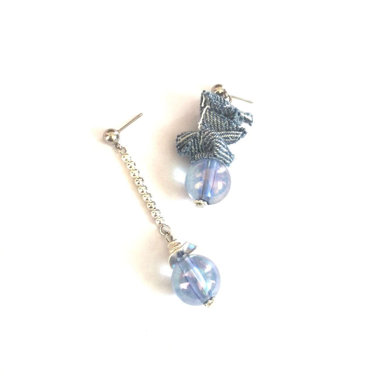 手作りしたデニムのうねうねがとてもバランス良く、ビーズはキラキラしていてカッコ&かわいいピアスです。