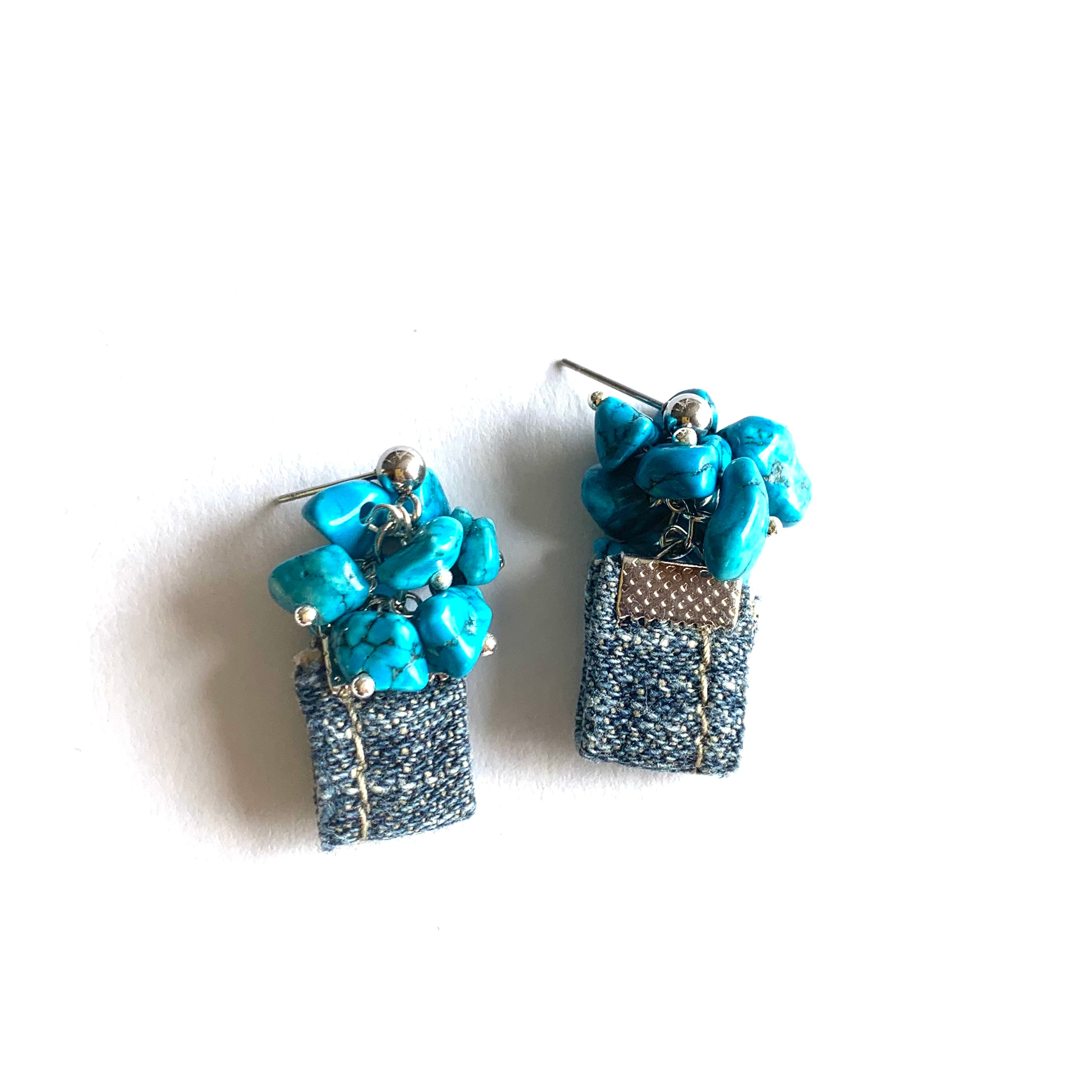 デニムと合成ターコイズを使用したピアスです。