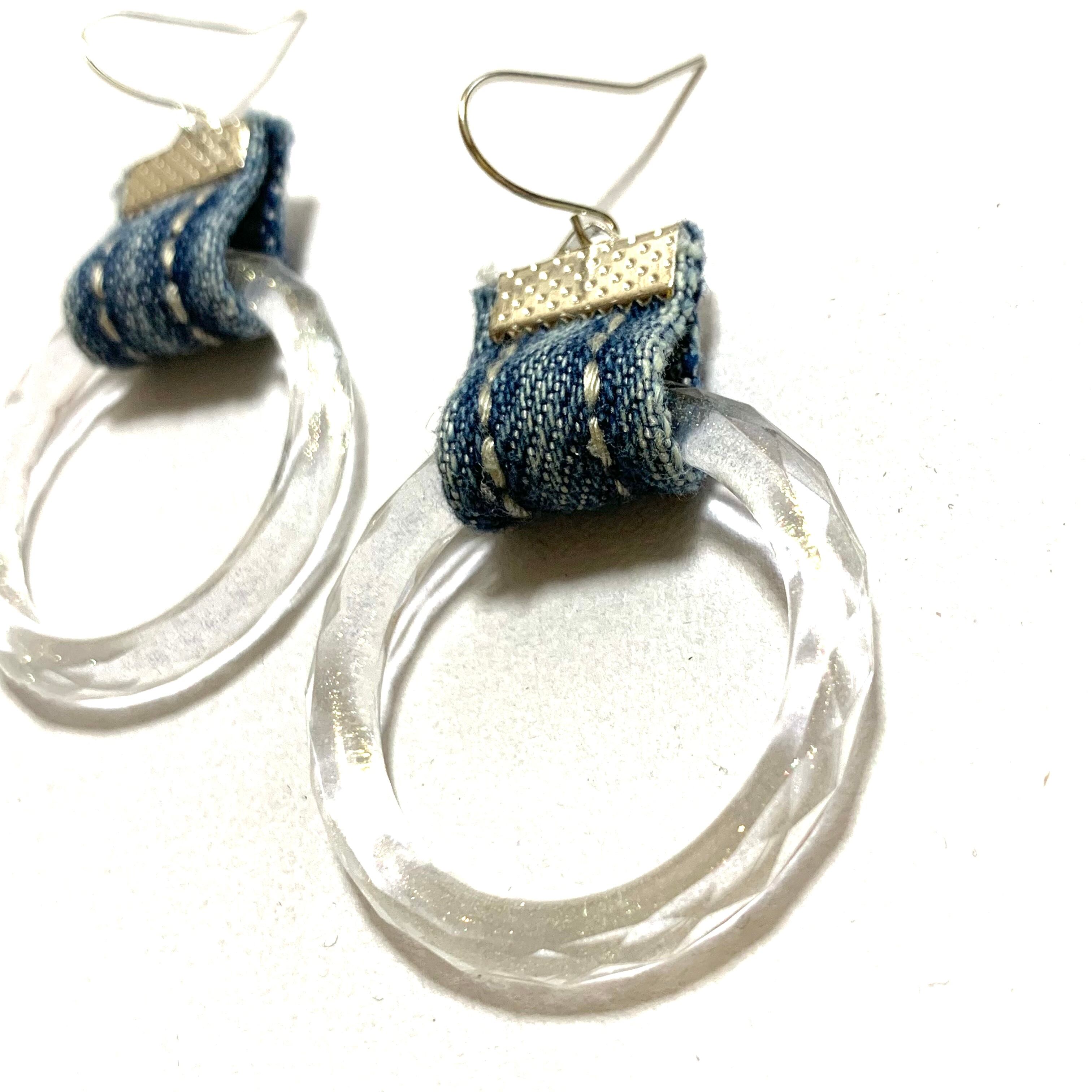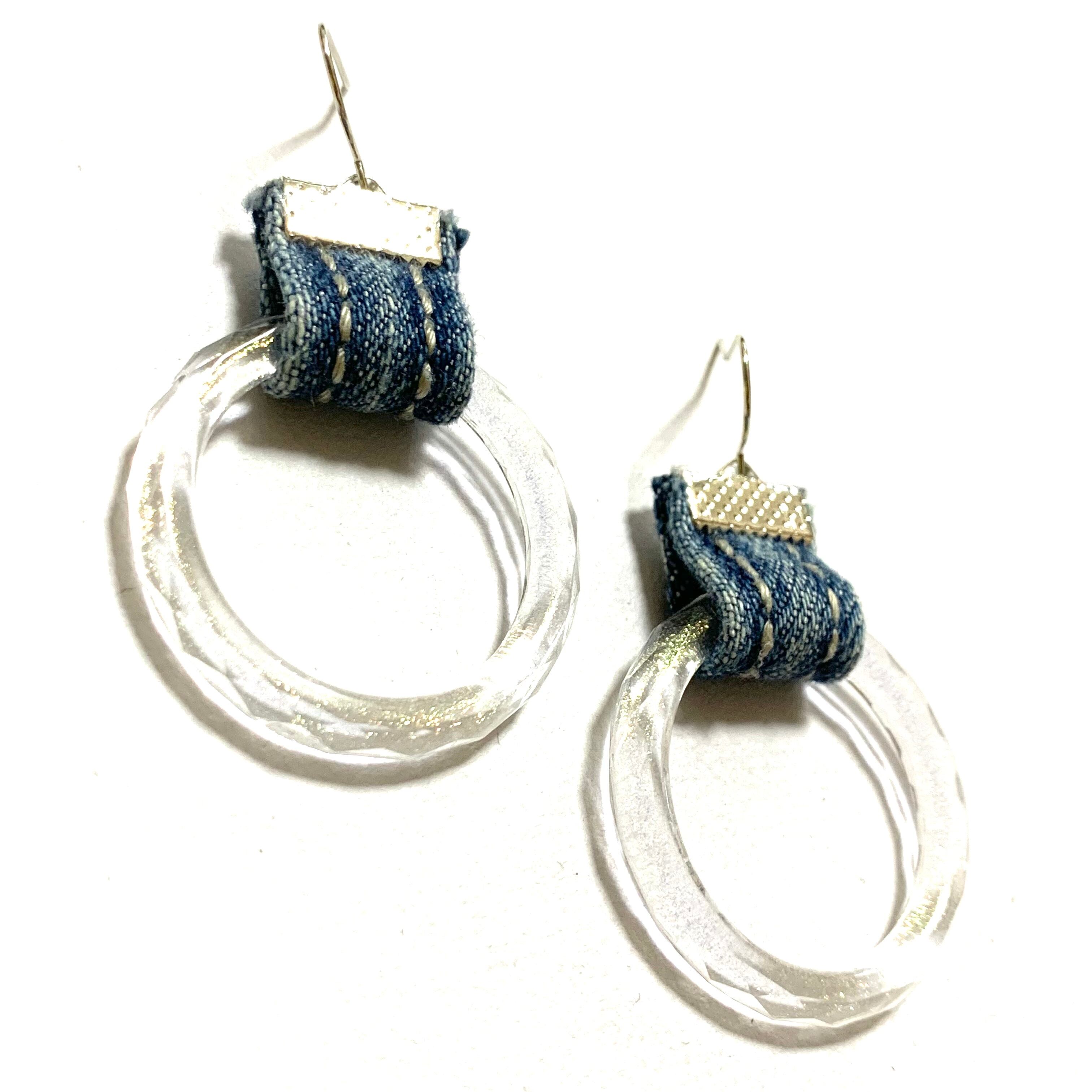 No.79 クリアリングピアス フープ クリア ラメ デニムピアス ピアス デニム カジュアル 個性的 誕生日プレゼント シルバー デニム
