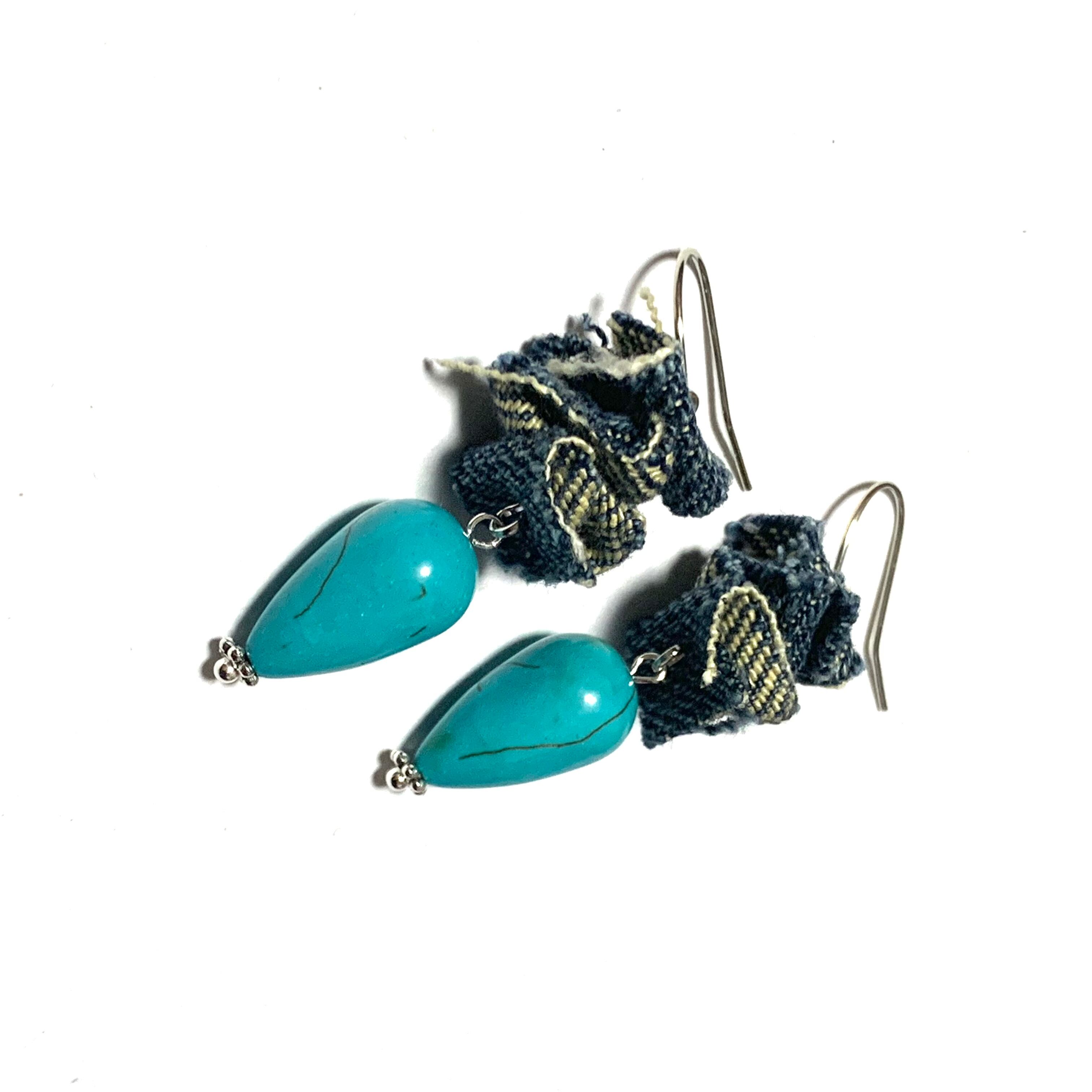 No.86 ターコイズ ターコイズブルー デニムピアス フック 夏 金属アレルギー サージカルステンレス 人気