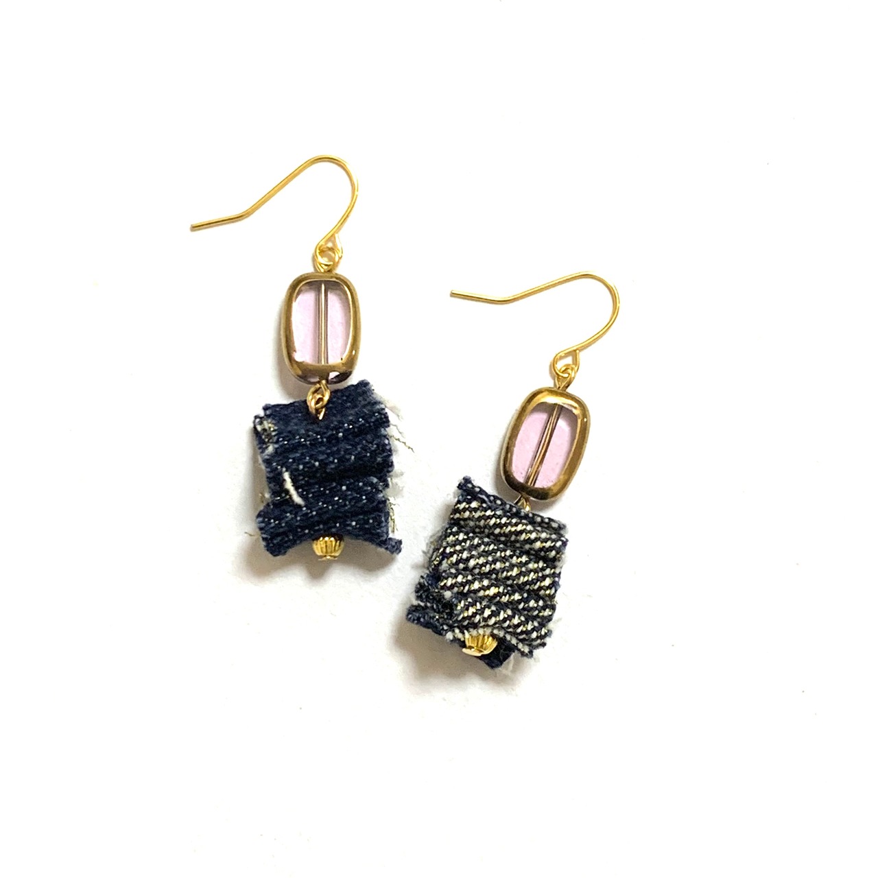 No.89 アンティーク風 ステンドグラスビーズ 癖強 デニムピアス 夏 金属アレルギー サージカルステンレス 人気
