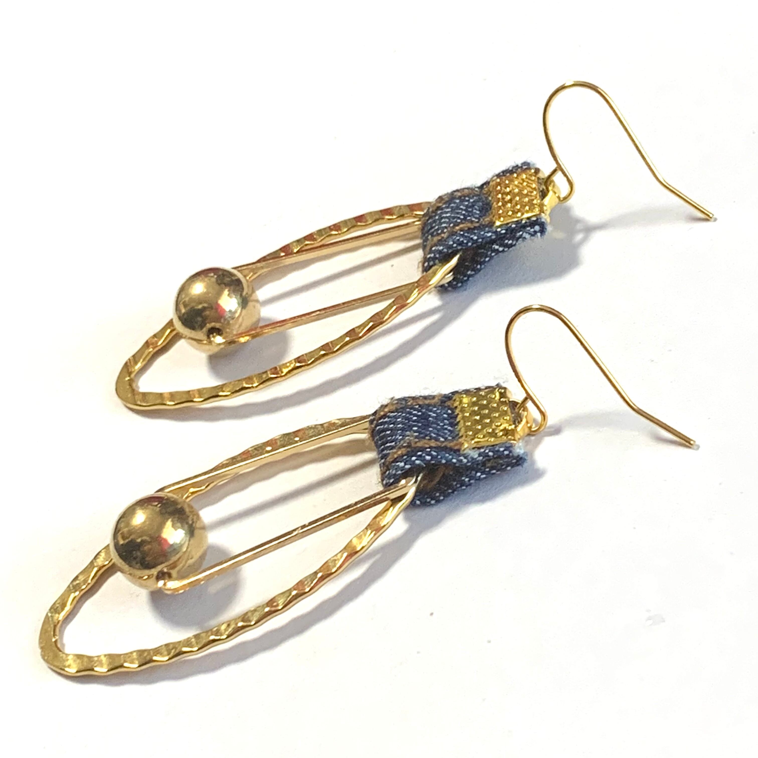 一つ一つ手作りしたデニムのピアスで、リングが耳元を華やかに飾ってくれます。