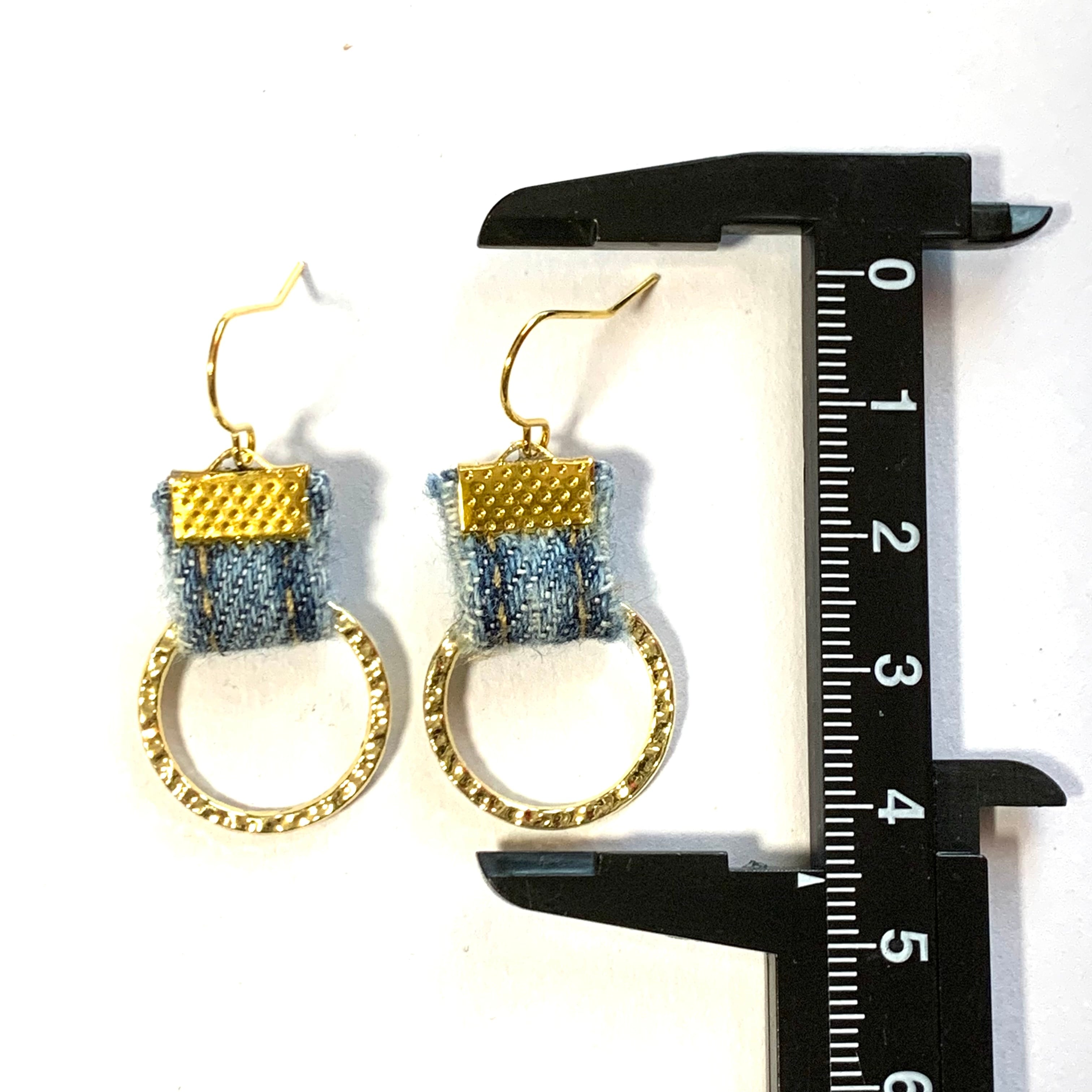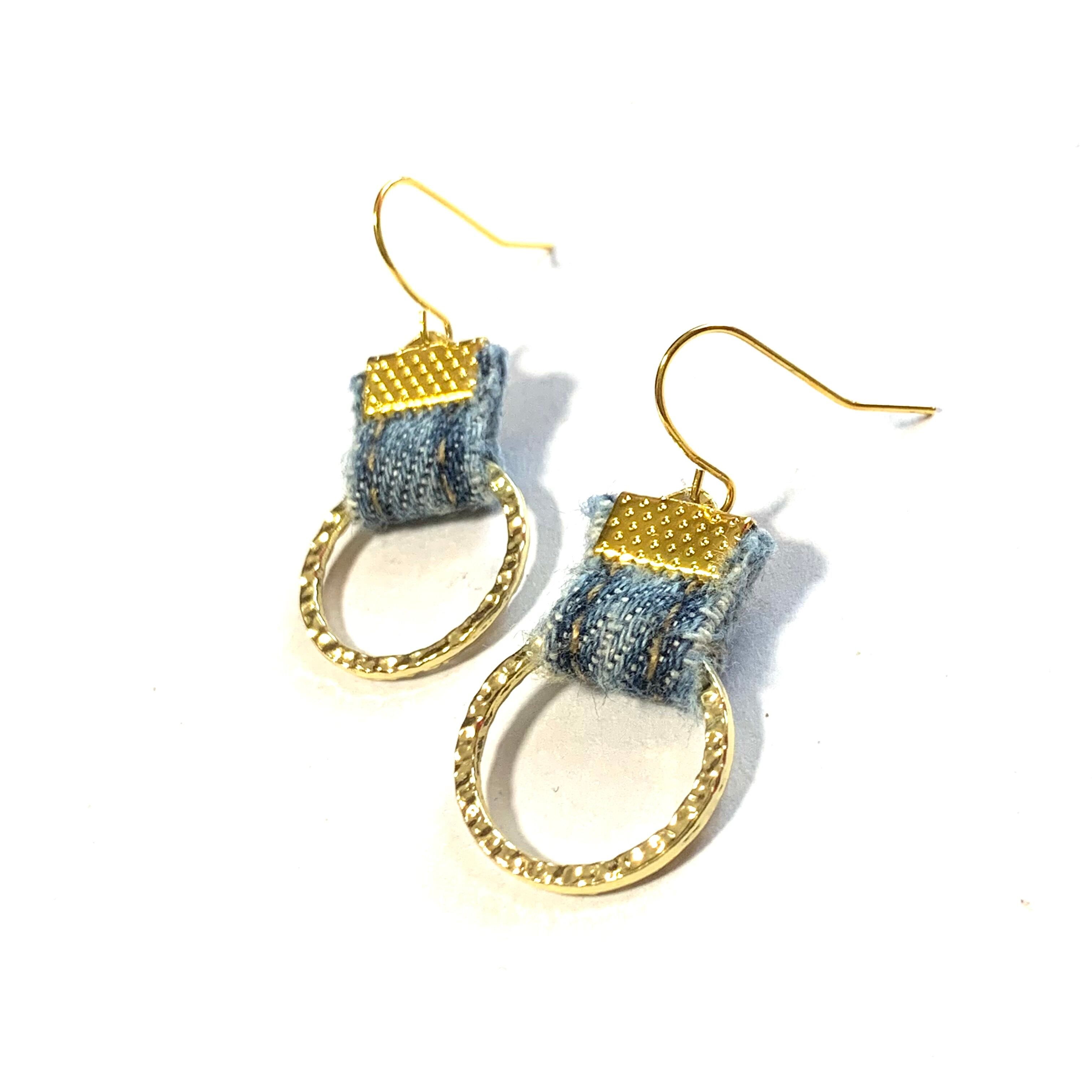 一つ一つ手作りしたデニムのピアスで、リングが耳元を華やかに飾ってくれます。