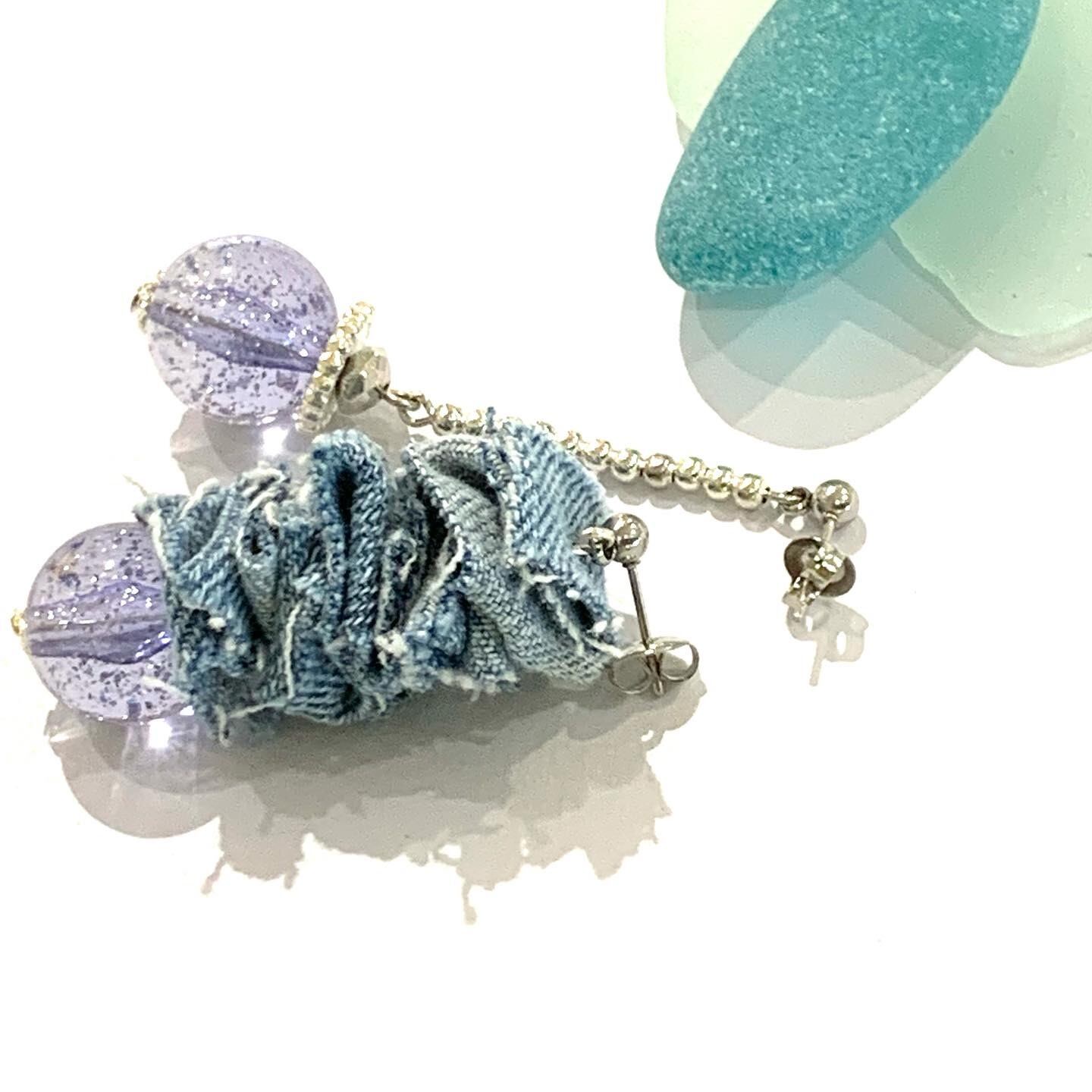 No.103 アシンメトリーピアス ブルー シルバーラメ 軽い デニムピアス フック 夏 金属アレルギー 人気 プレゼント