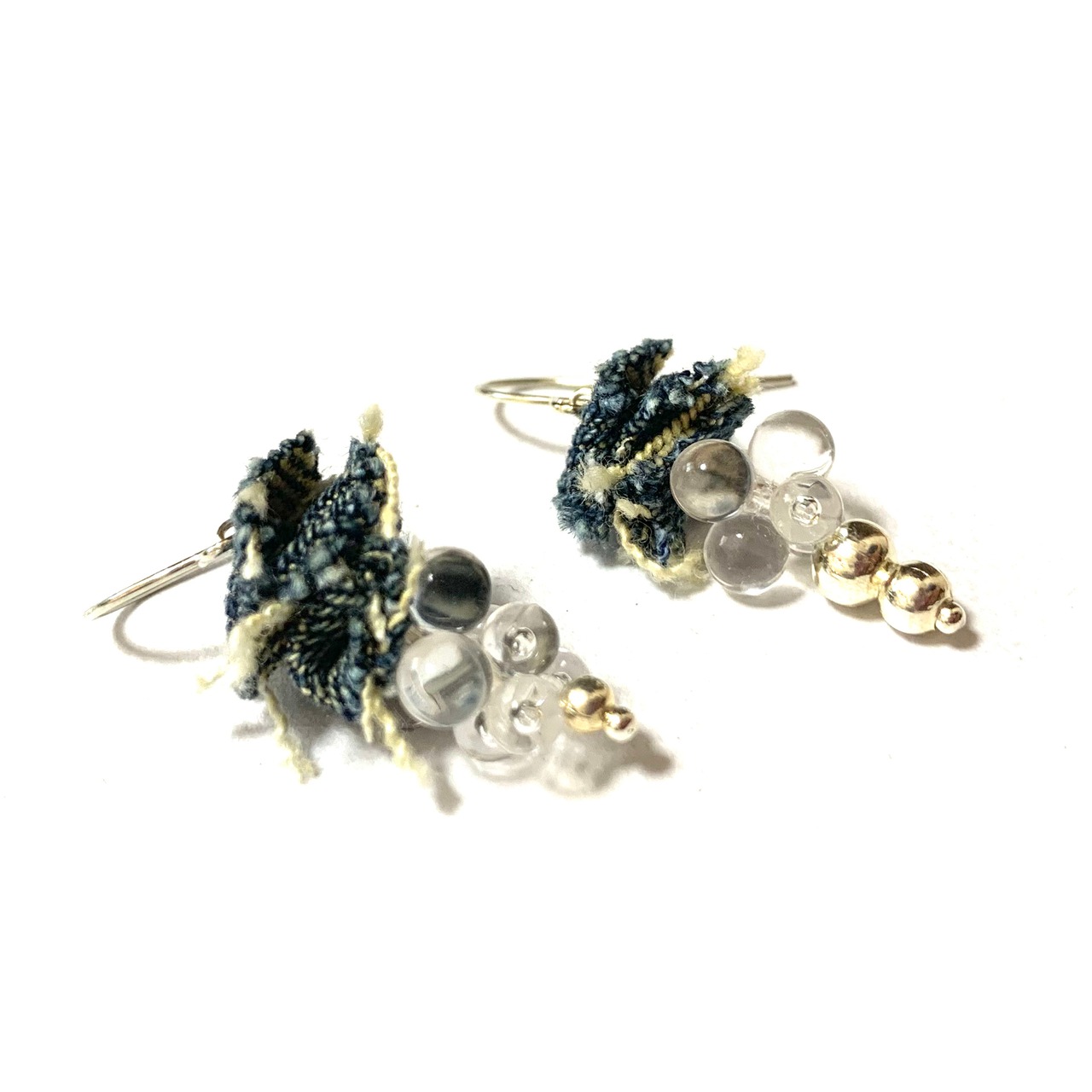 一つ一つ手作りしたデニムのピアスで、リングが耳元を華やかに飾ってくれます。