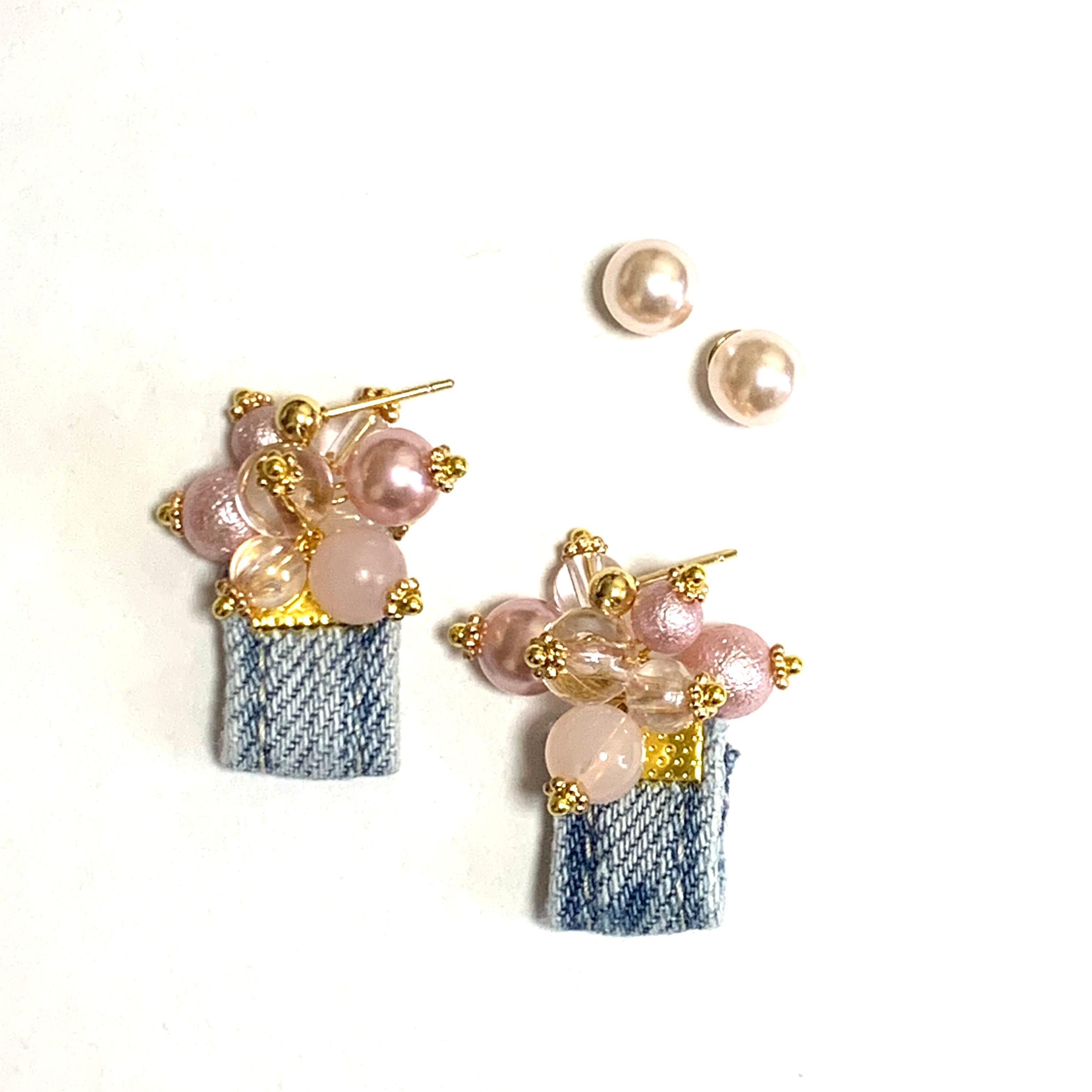 No.122 ピンク ピンクベージュ ゴールド パール パールキャッチ デニム 夏 金属アレルギー サージカルステンレス 人気