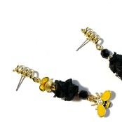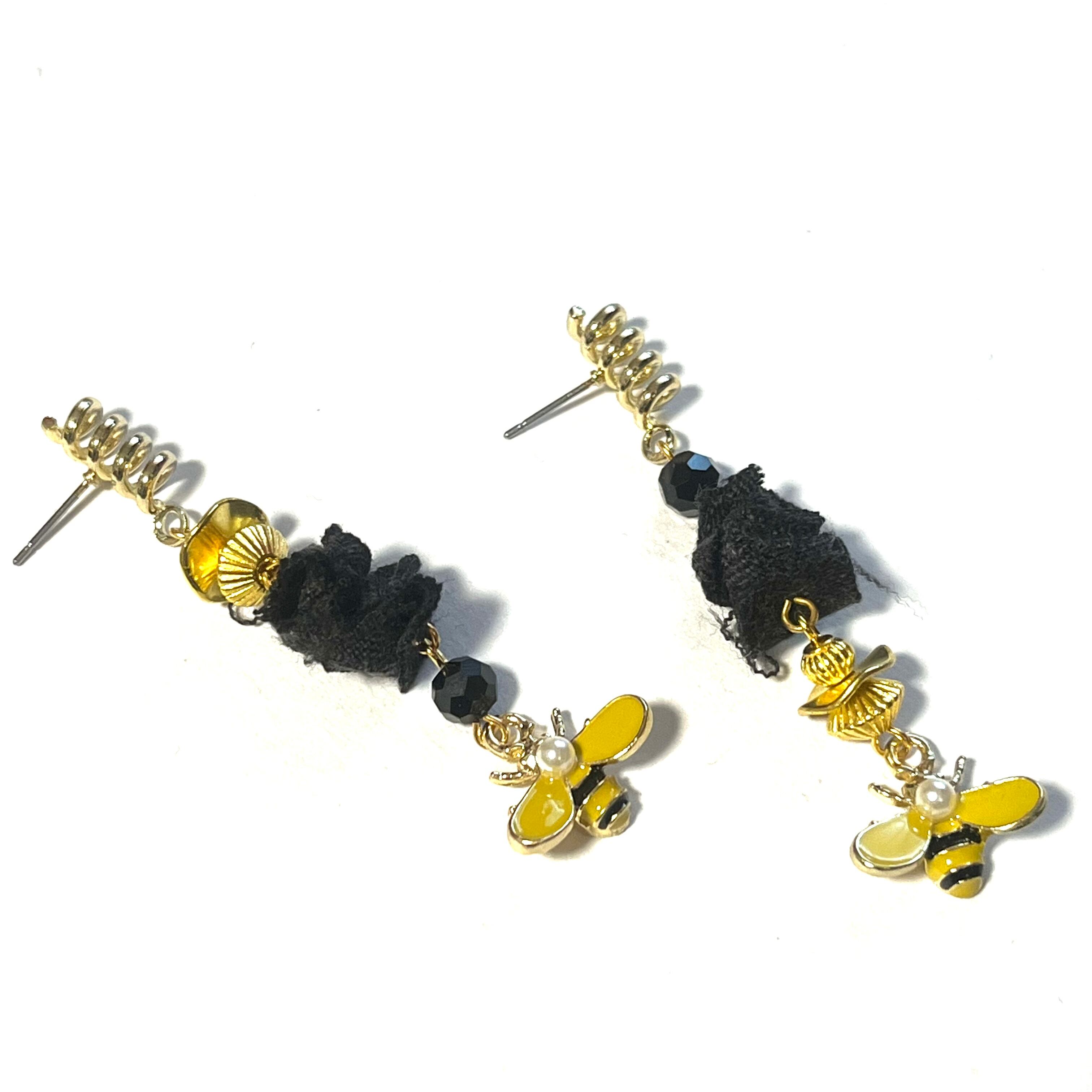 No.146 ハチ Bee はちさん はち ゴールド ネジネジ ブラック 黒 YELLOW イエロー 黄色 ロングピアス デニムピアス フック うねうねシリーズ 夏 金属アレルギー あいにー 人気