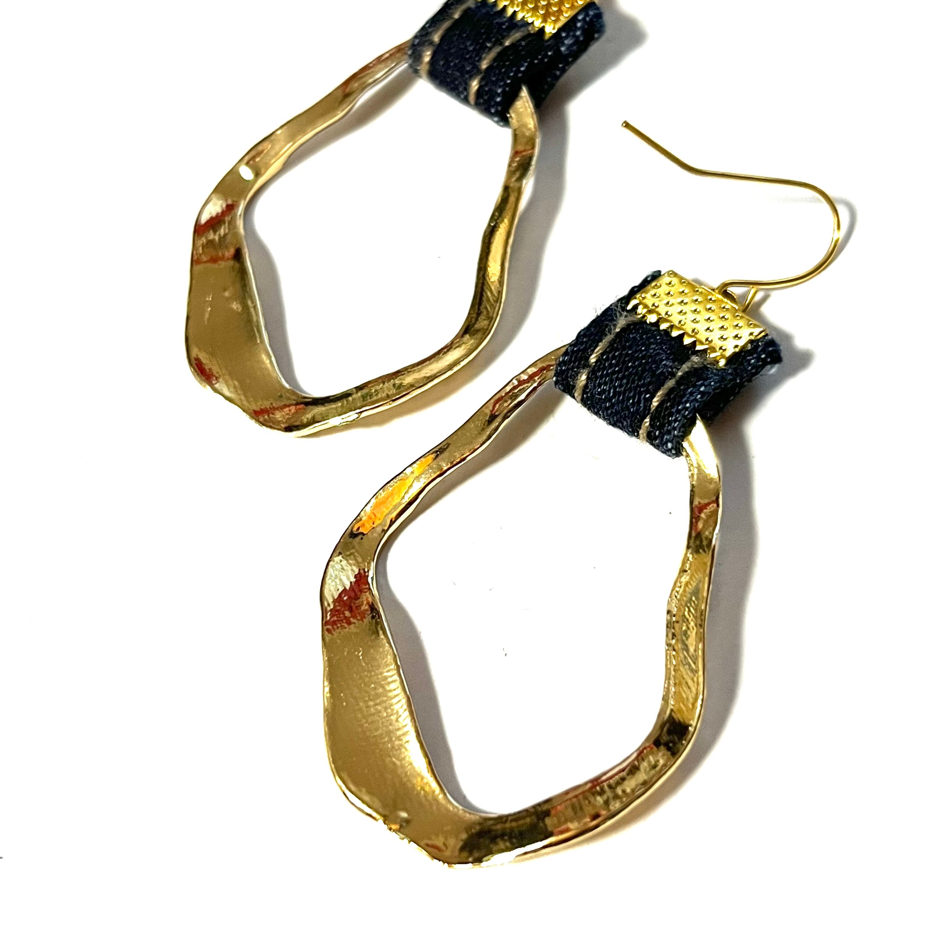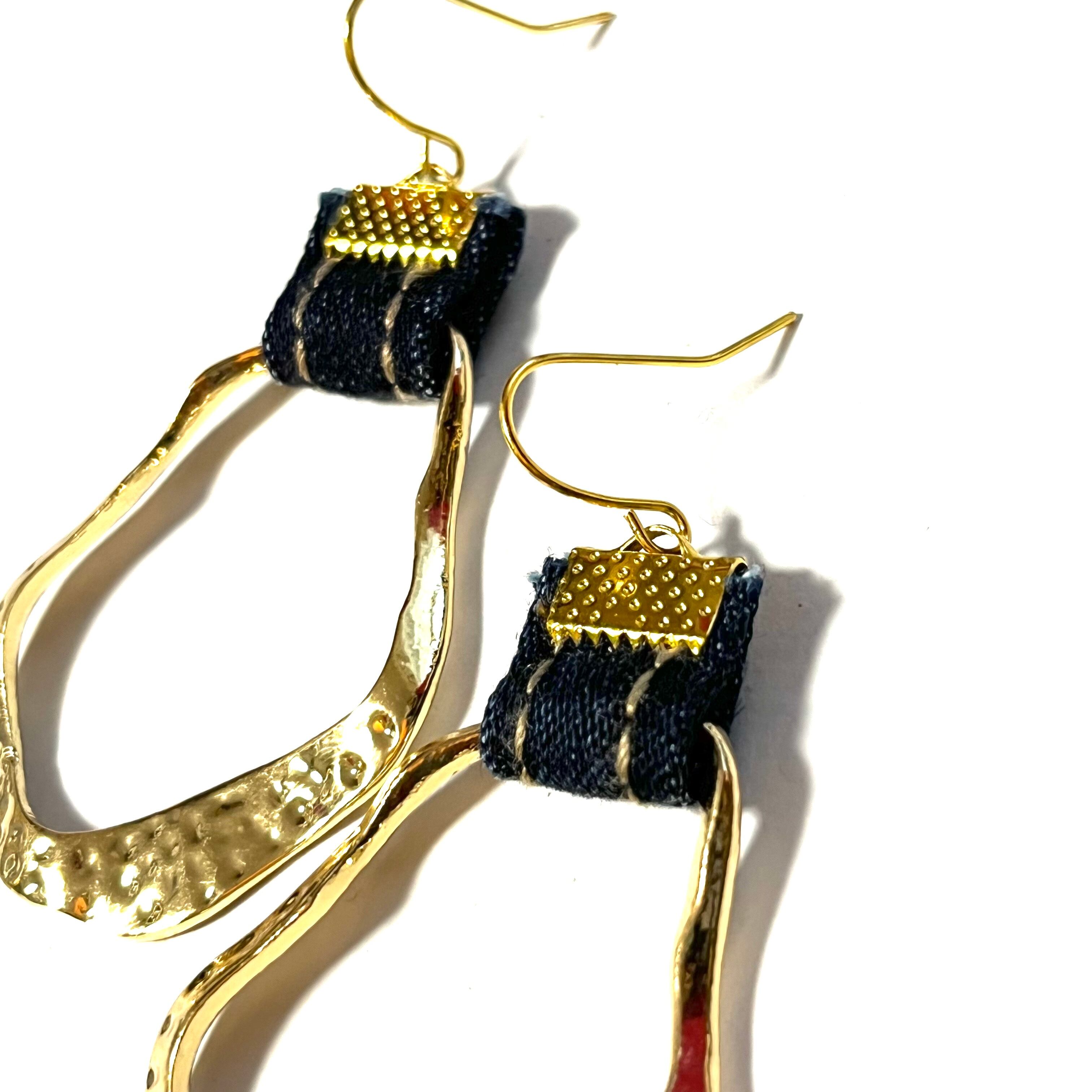 一つ一つ手作りしたデニムのピアスで、リングが耳元を華やかに飾ってくれます。