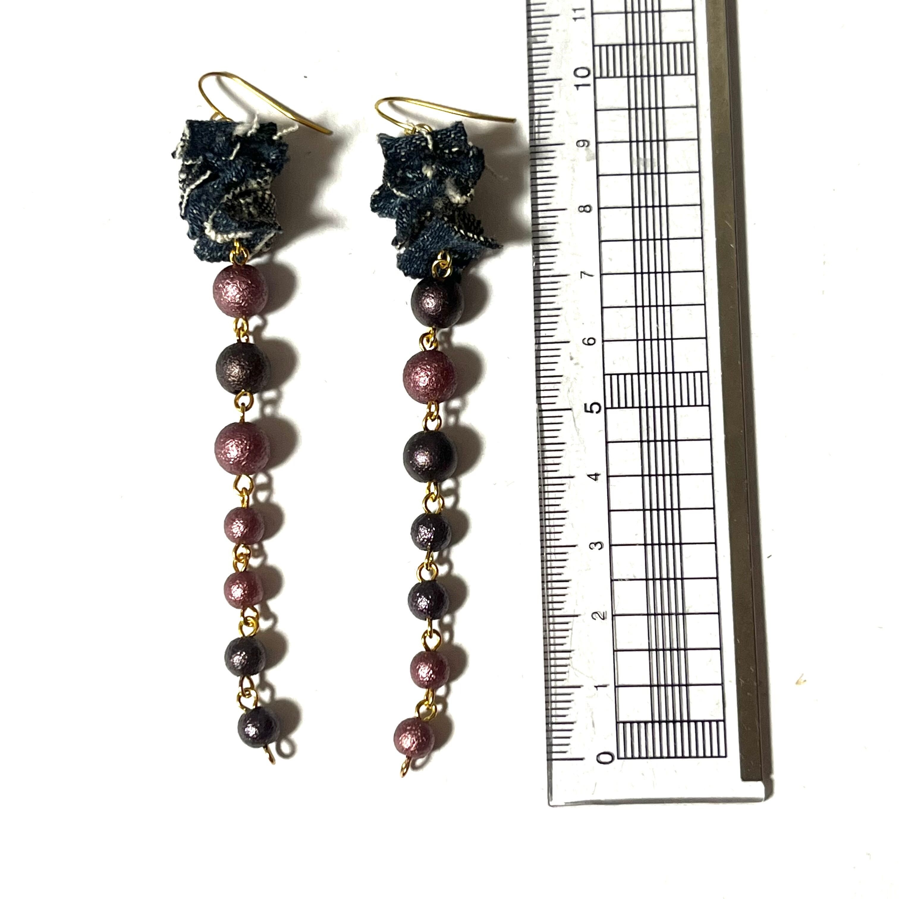 No.158 ながーいたんりー ロングピアス ロング 手染めビーズ ゴールド ボルドー ブラウン うねうねローング デニムピアス フック 夏 サマー 誕生日プレゼント 夏 サマー 誕生日 プレゼント 金属アレルギー 大ぶり | あいにー