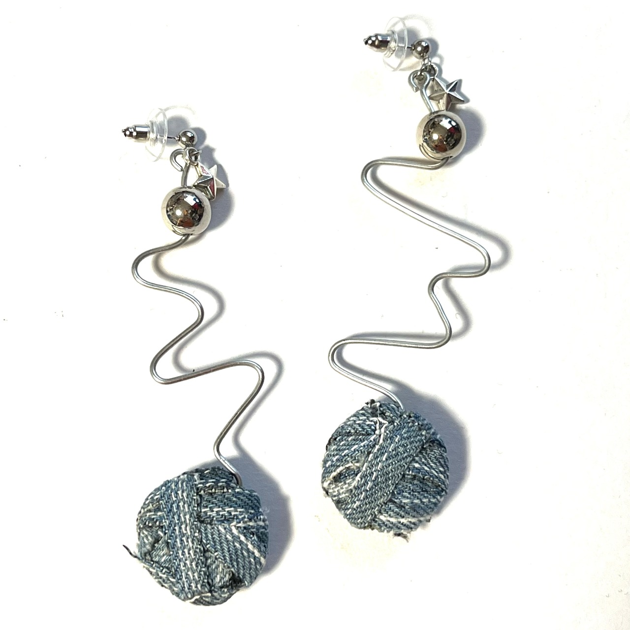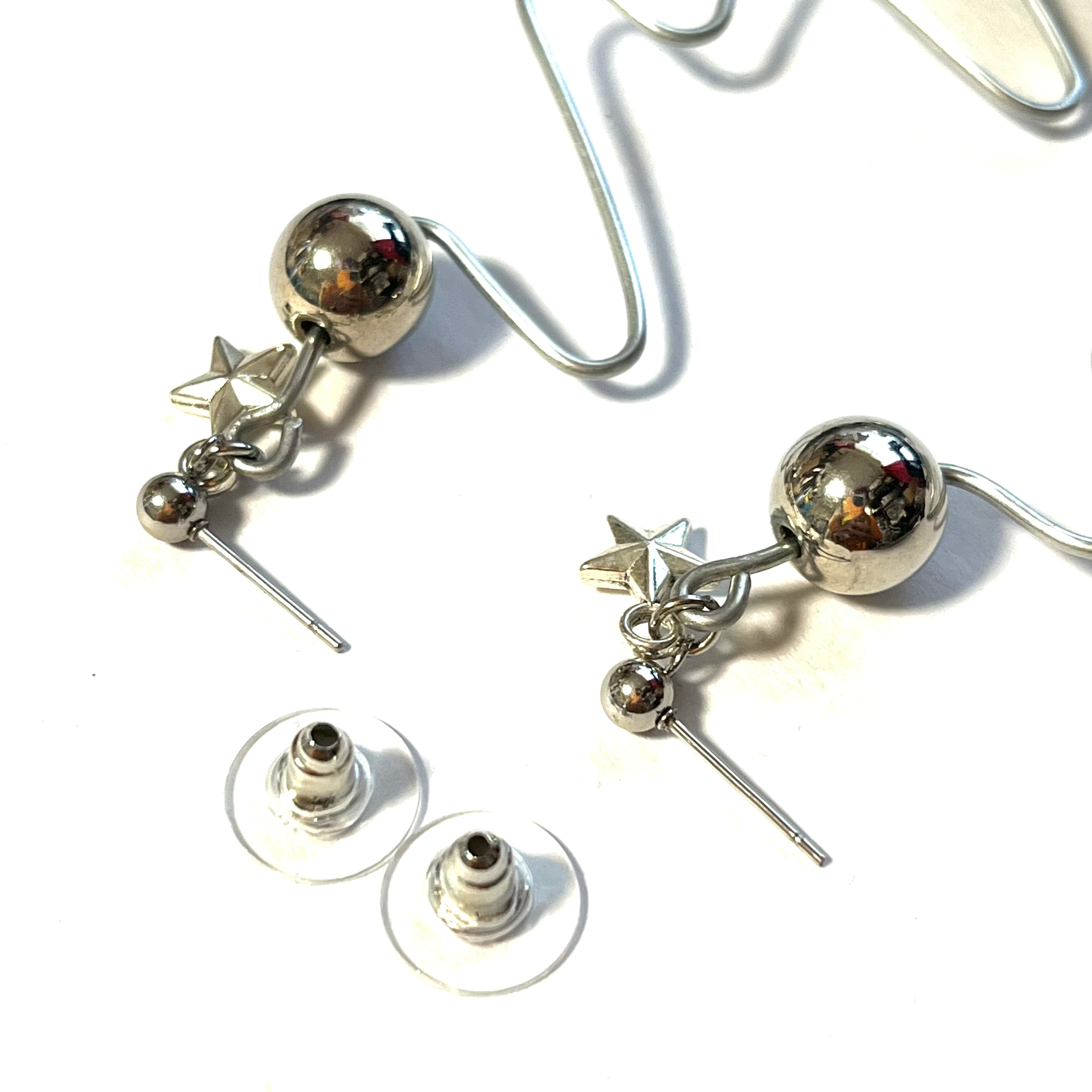 No.160 星 ワイヤーアート ワイヤー ピアス デニムピアス 軽い ステンレス シルバー 大ぶり チェーン 合金 カッコいい 金属アレルギー 個性的 個性派 クリア シリコンキャッチ | あいにー