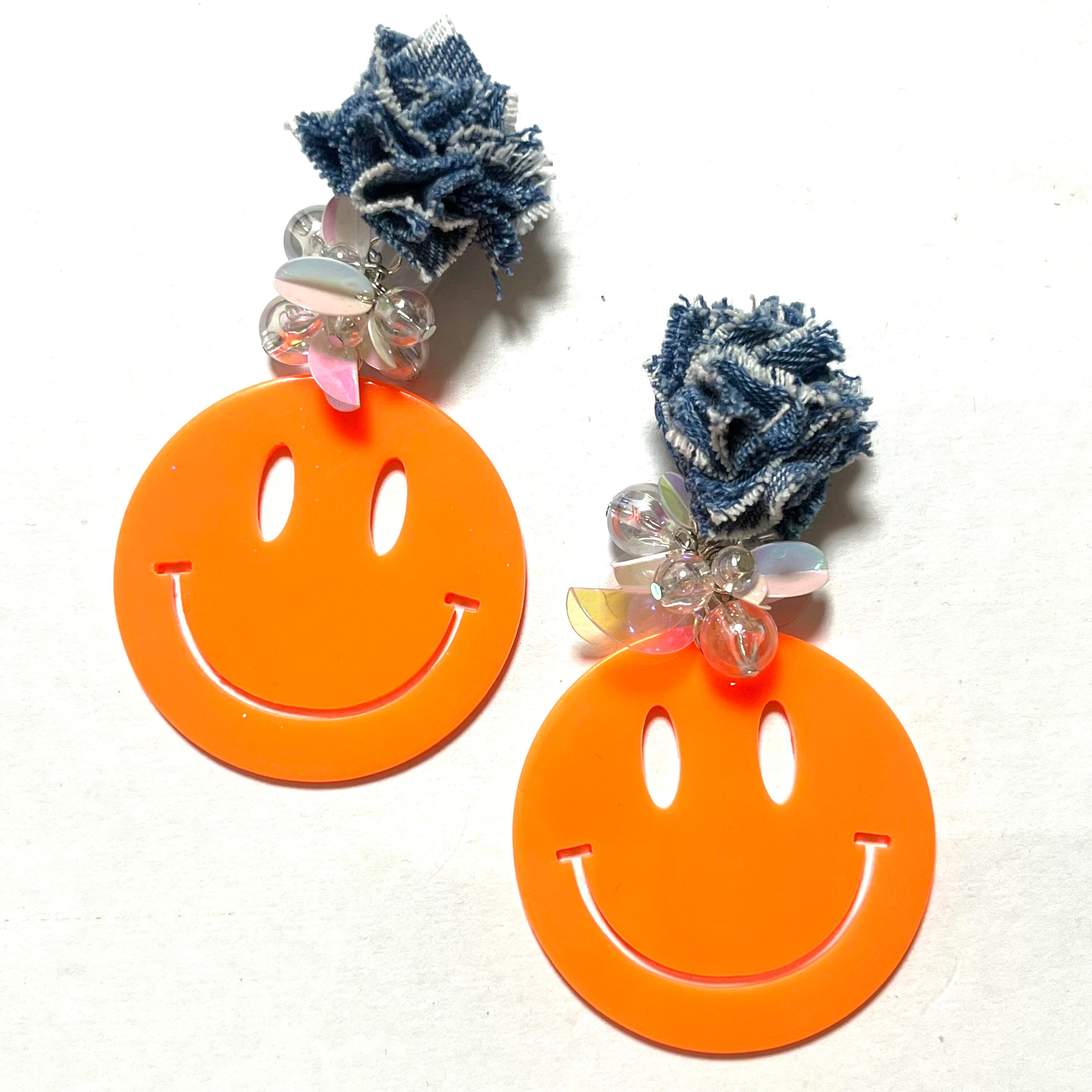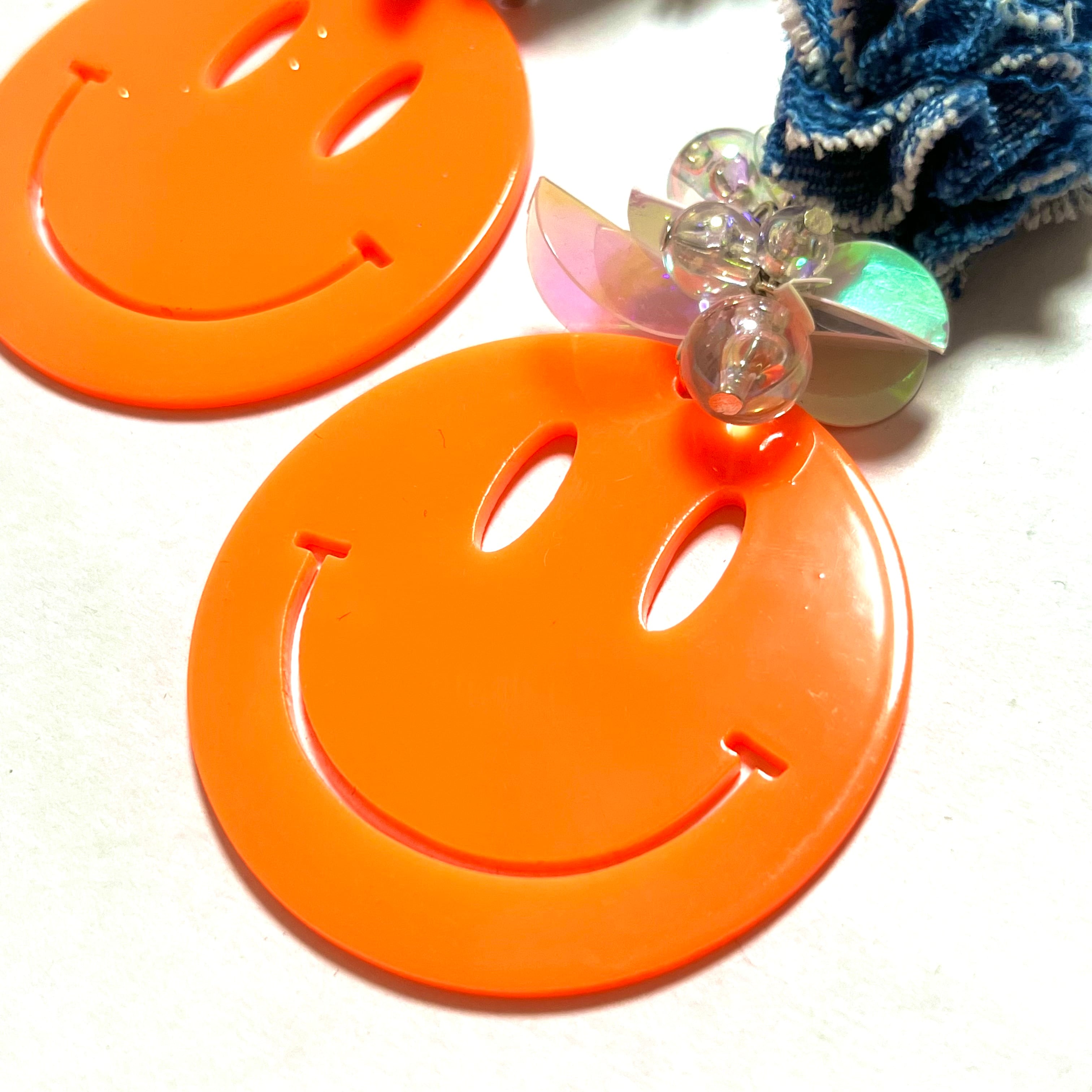 No.177 にこつん☺︎ にこちゃん オレンジ 蛍光オレンジ 派手 ピアス デニムピアス 軽い ステンレス シルバー 大ぶり チェーン 合金 カッコいい 金属アレルギー 個性的 個性派 クリア シリコンキャッチ