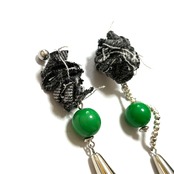 No.188 ロングピアス グリーン Green 緑 シルバー ロング うねうねロング デニムピアス フック 夏 サマー 誕生日プレゼント 夏 サマー 誕生日 プレゼント 金属アレルギー 大ぶり