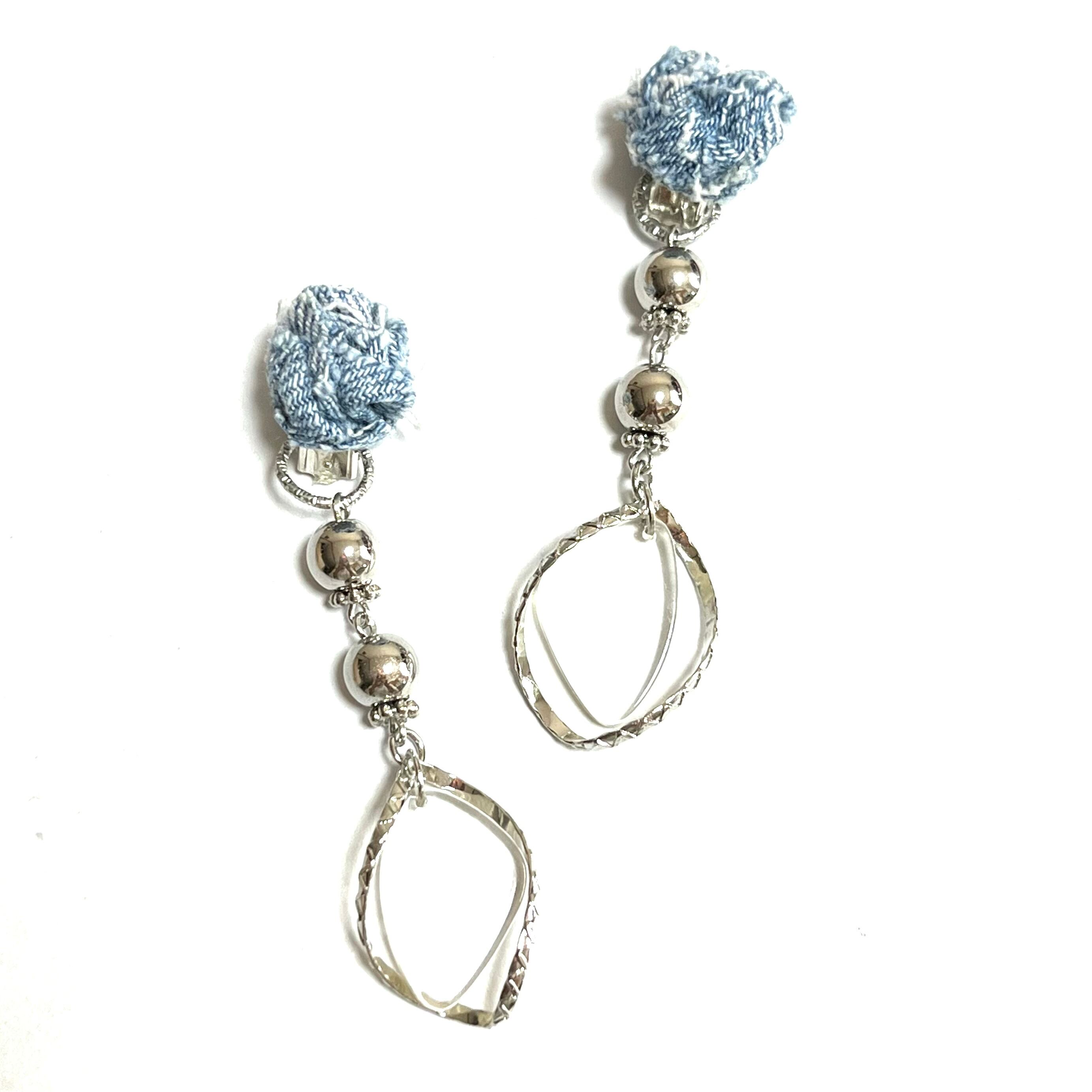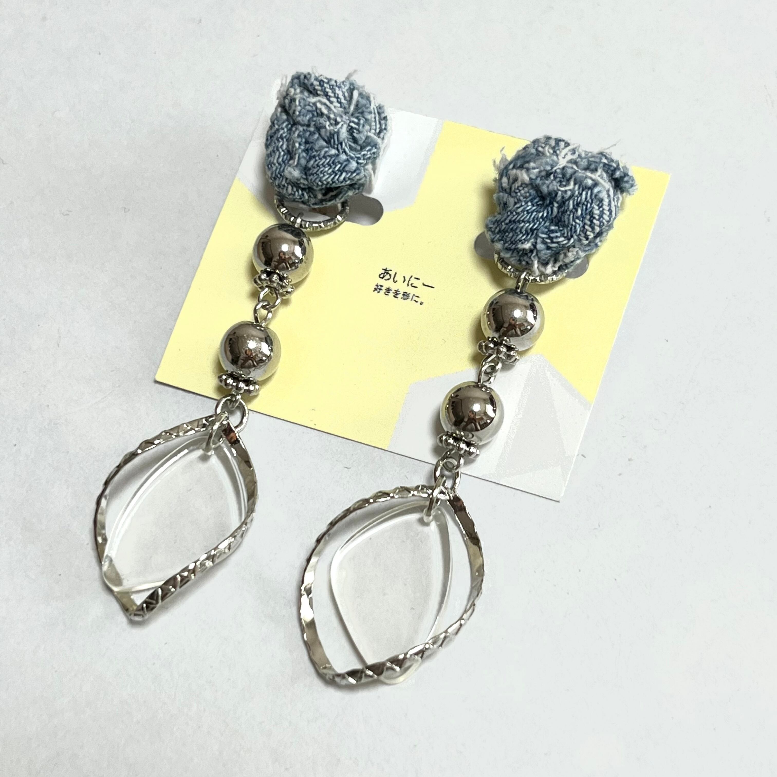 くしゅくしゅなデニムにシルバーとクリアのパーツが