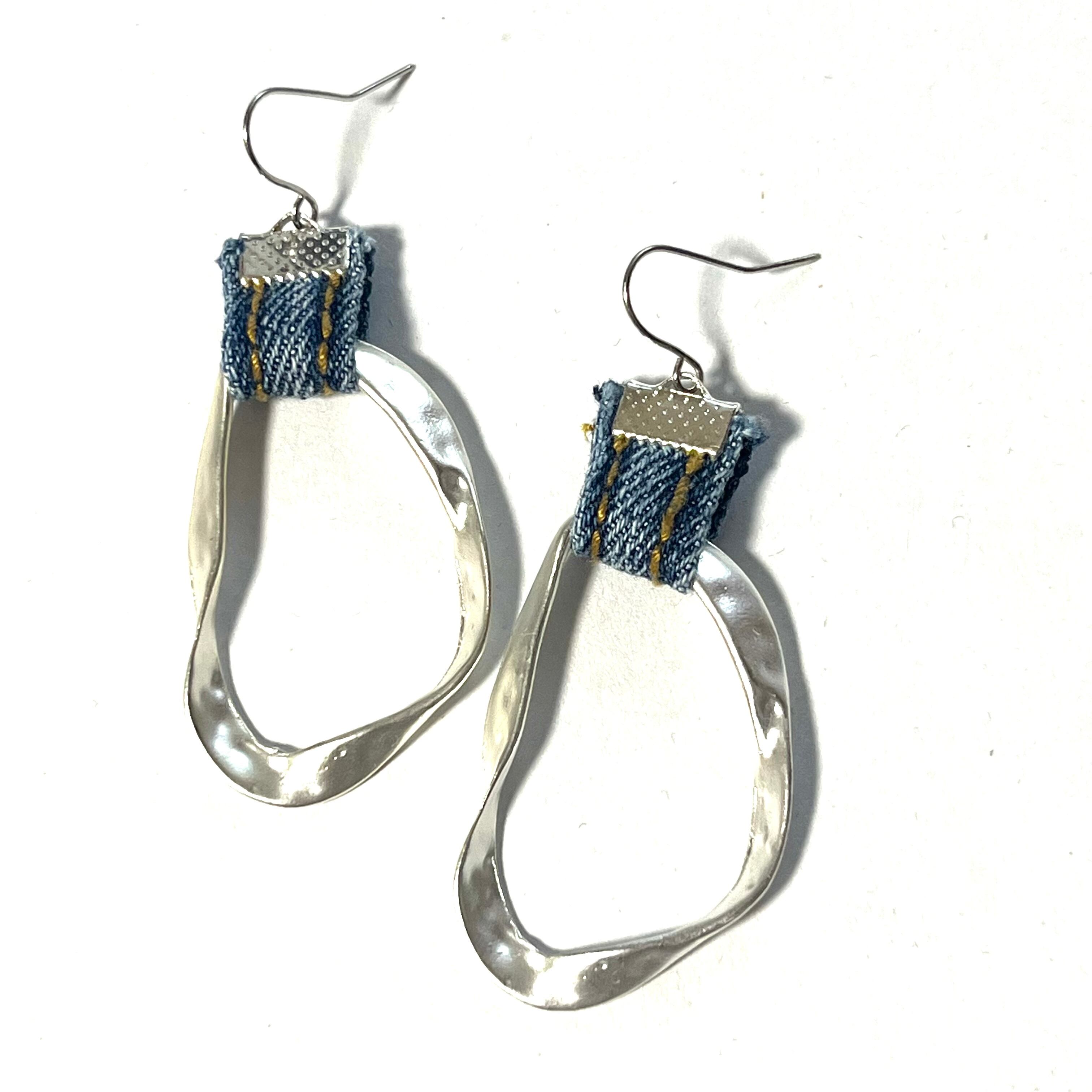 一つ一つ手作りしたデニムのピアスで、リングが耳元を華やかに飾ってくれます。