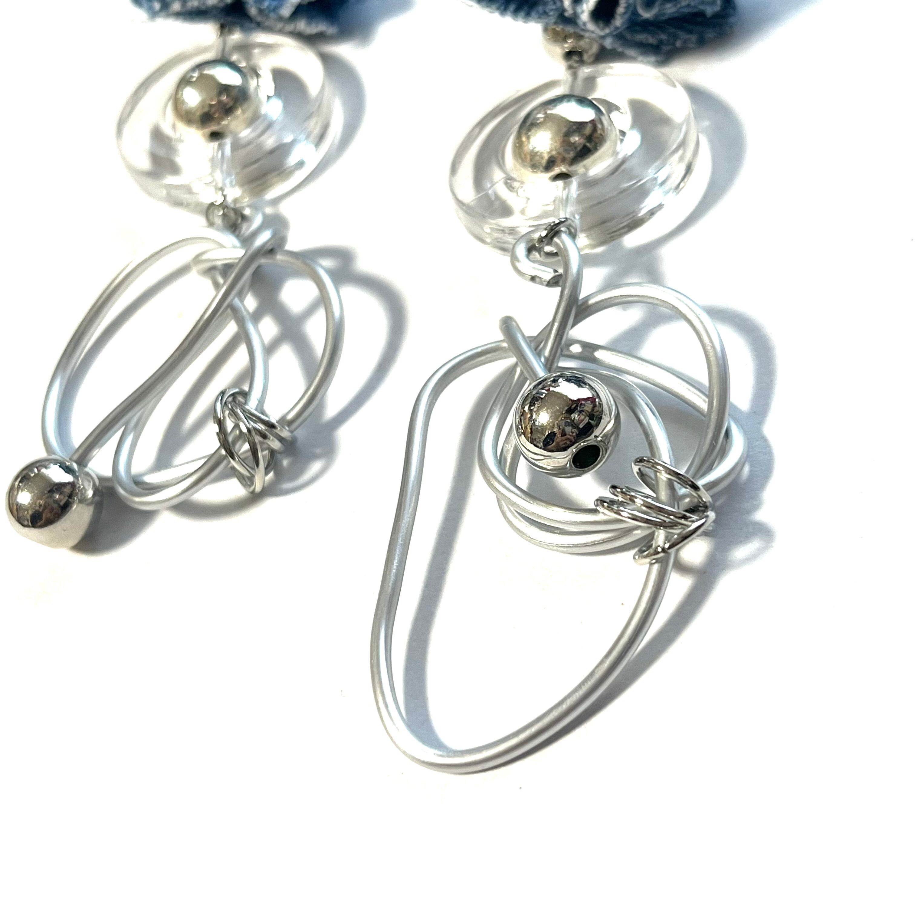 No.205 大ぶり ワイヤー クリア くせ強 シルバー 立体 デニムピアス ピアス 軽い ステンレス シルバー 大ぶり チェーン 合金 カッコいい 金属アレルギー 個性的 個性派 クリア シリコンキャッチ