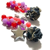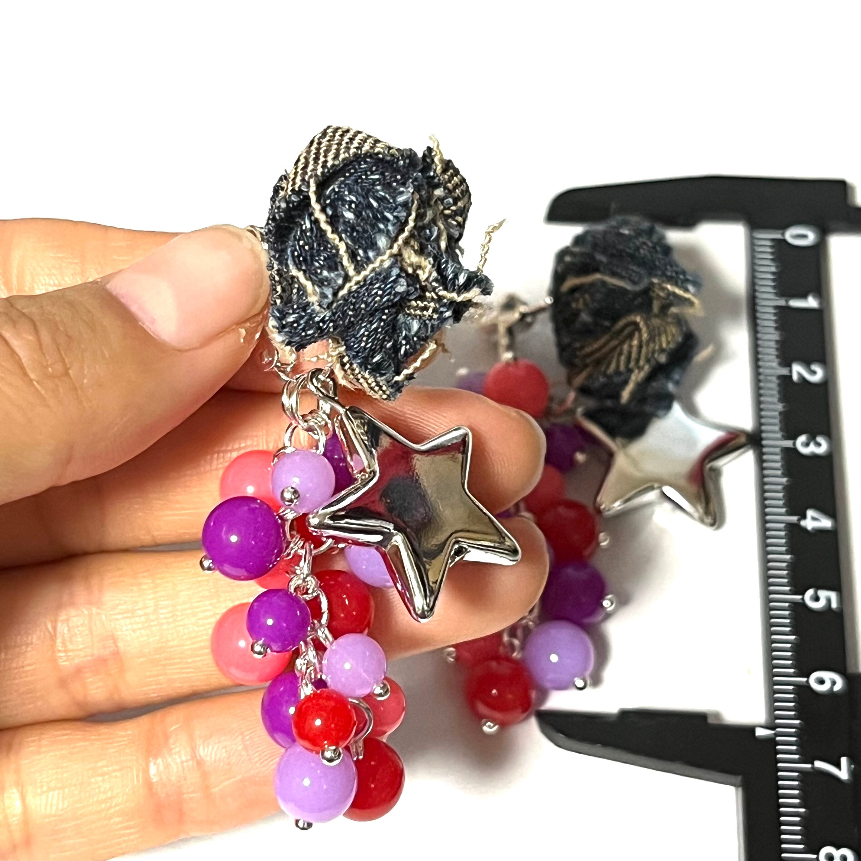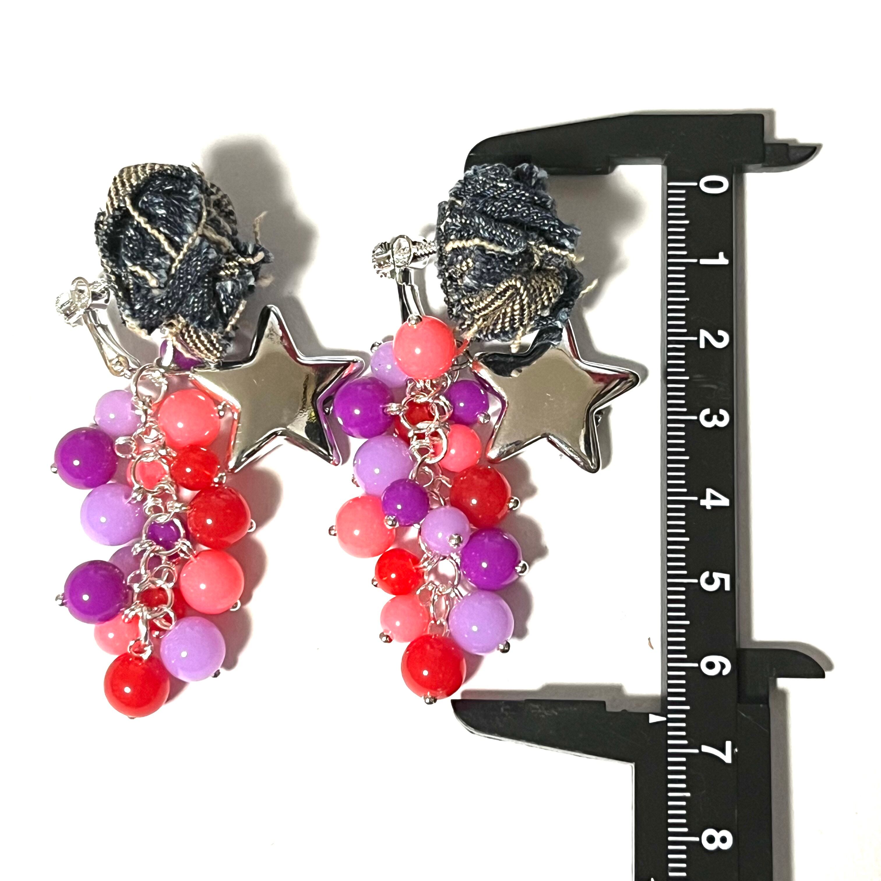 No.208 バブルガム ぶどう シルバー 星 スター 赤 ピンク パープル 派手 ピアス デニムピアス 軽い ステンレス シルバー 大ぶり チェーン 合金 カッコいい 金属アレルギー 個性的 個性派 クリア シリコンキャッチ | あいにー