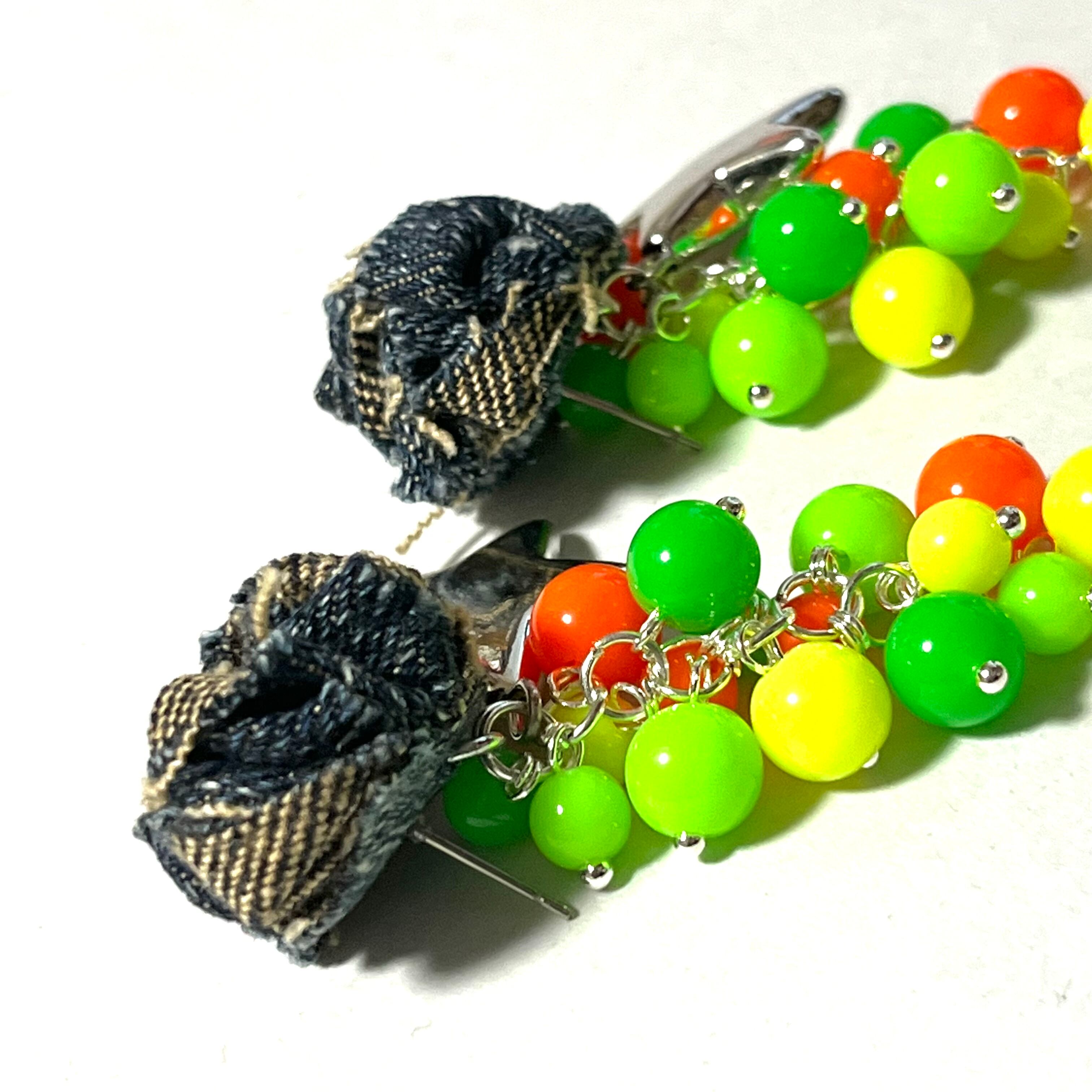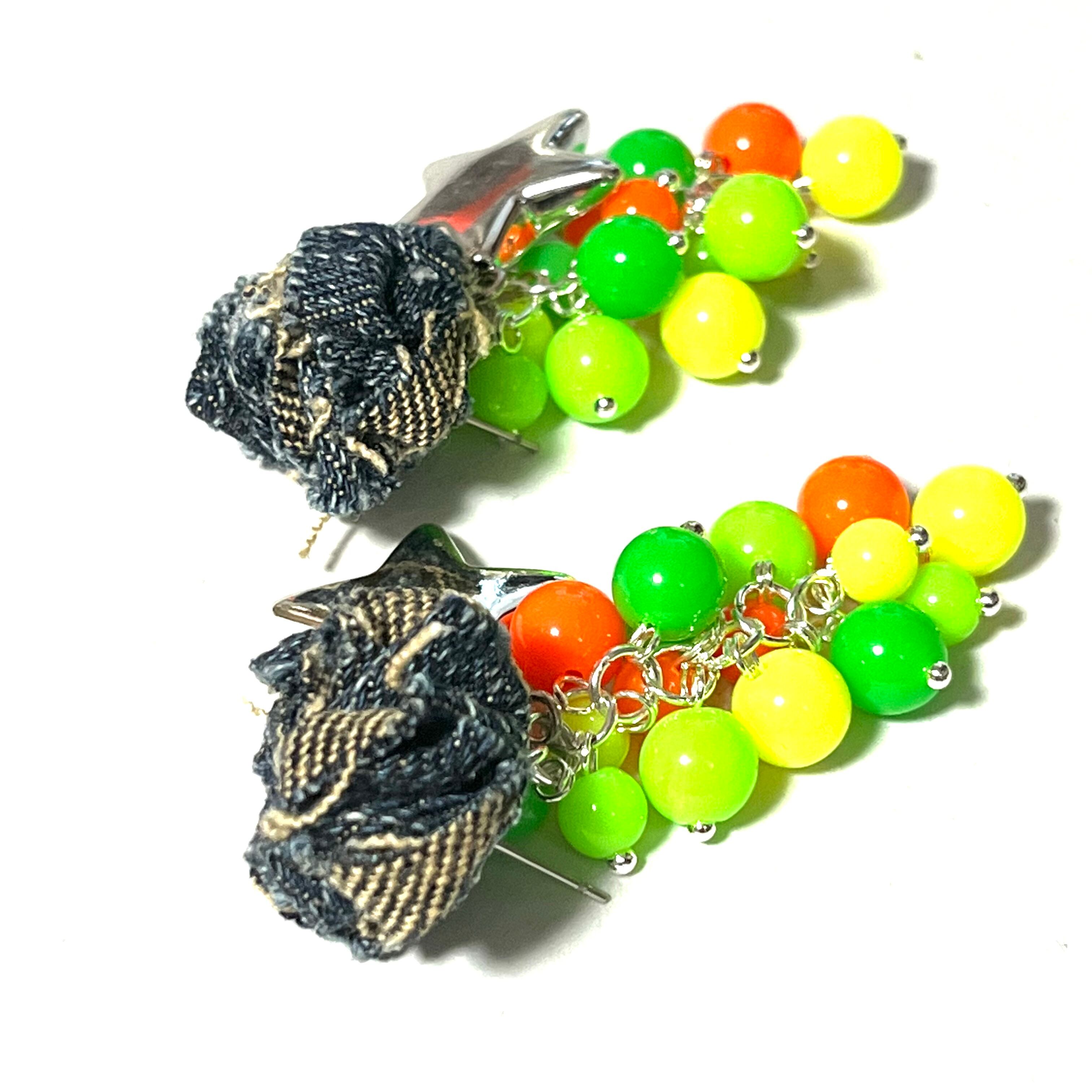 No.209 バブルガム イエロー オレンジ グリーン ビタミンカラー シルバー 星 スター派手 ピアス デニムピアス 軽い ステンレス シルバー 大ぶり チェーン 合金 カッコいい 金属アレルギー 個性的 個性派 クリア シリコンキャッチ