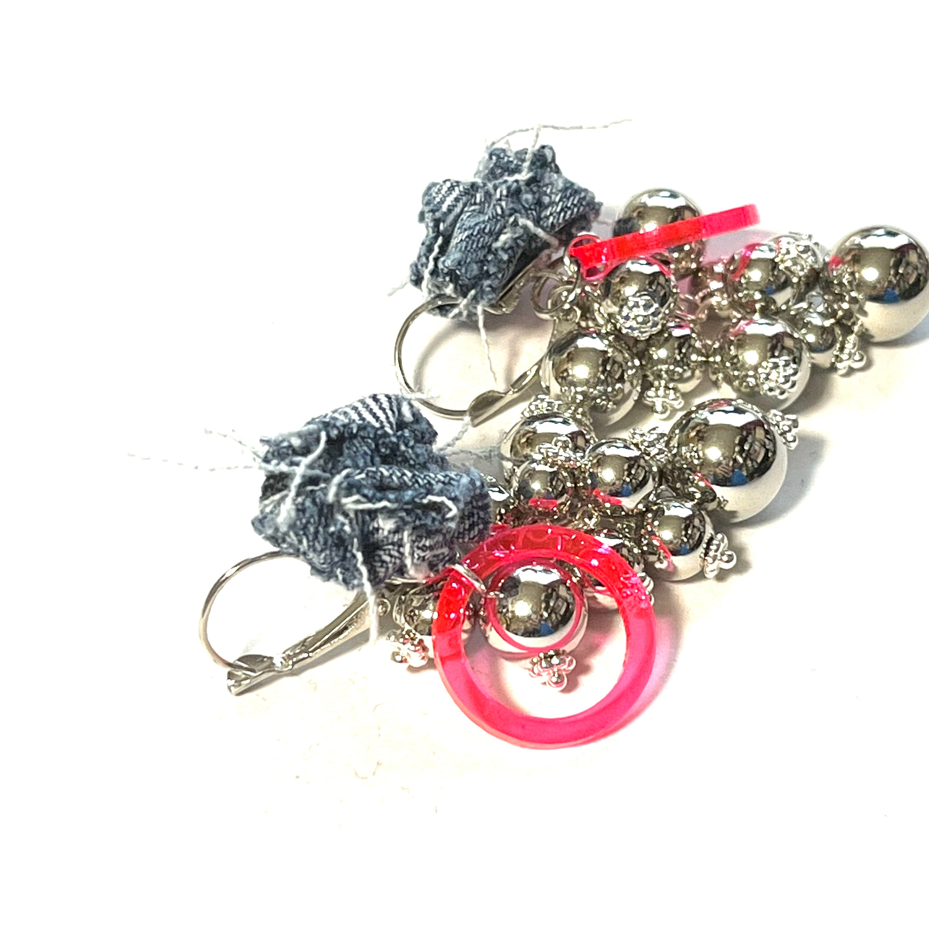 No.220 シルバー ピンク 蛍光ピンク 蛍光カラー 派手 デニムピアス 金属アレルギー 人気 プレゼント