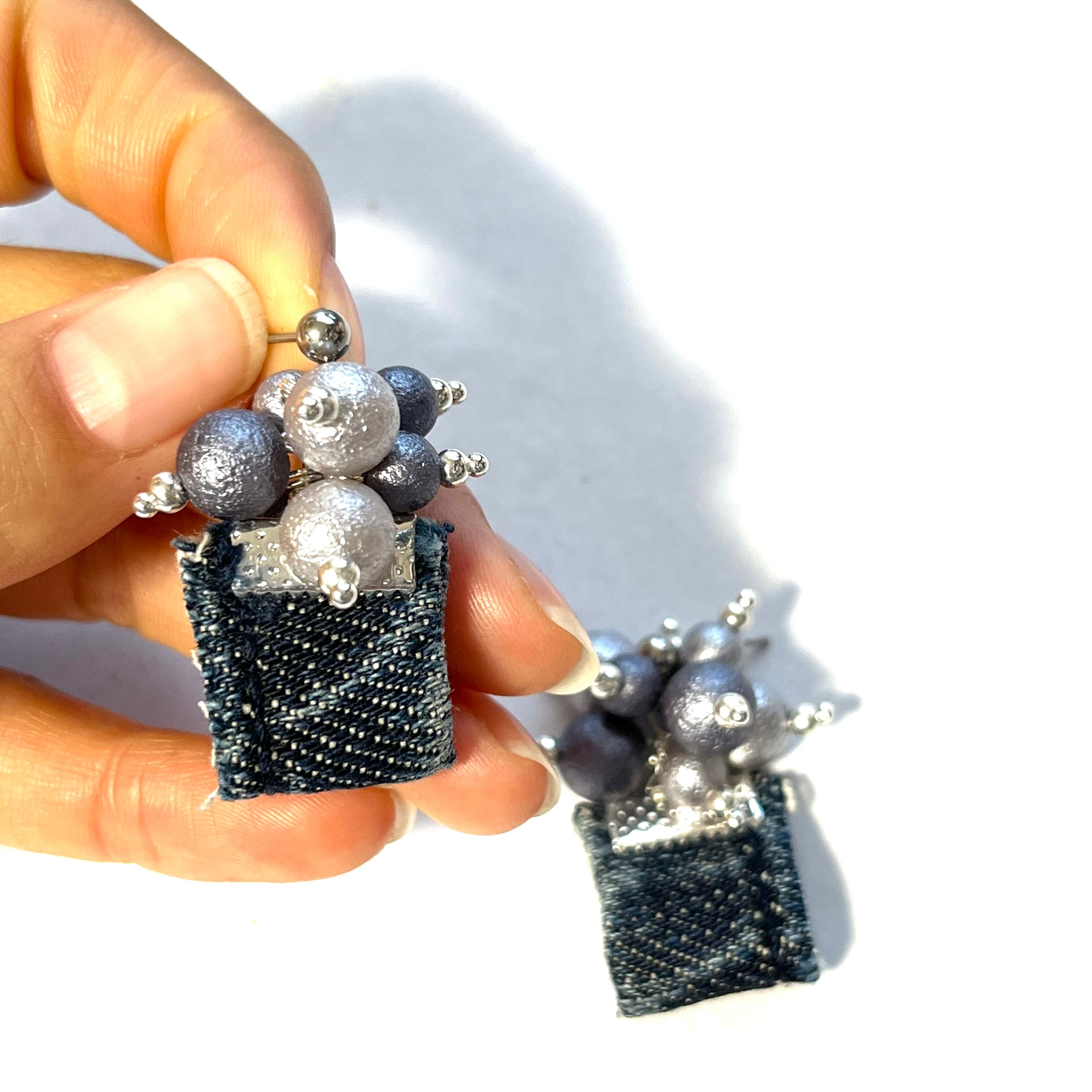 No.223 グレーパール シルバー ダークグレー デニムピアス デニム モノトーン 金属アレルギー 人気 プレゼント